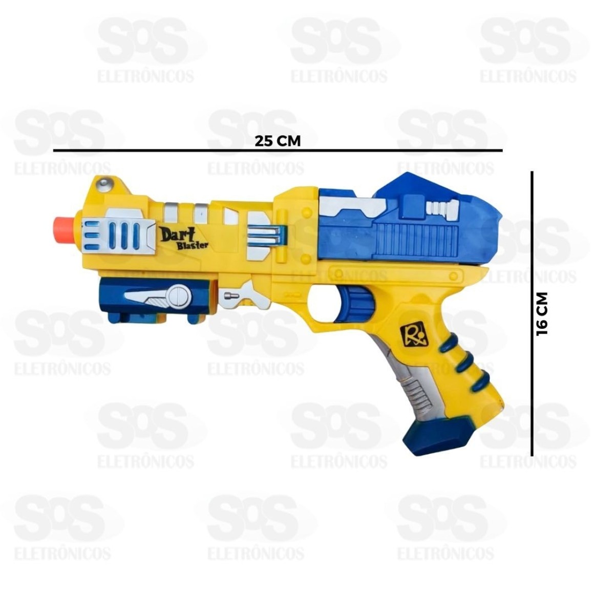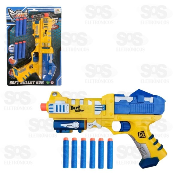Pistola Air Shoot Lança Dardos Toy King TK-1089 Pistola de plástico com 6 dardos macios que não machucam. Indicado para maiores de 3 anos. Tamanho da arma: 25 x 16 cm Cores variados.