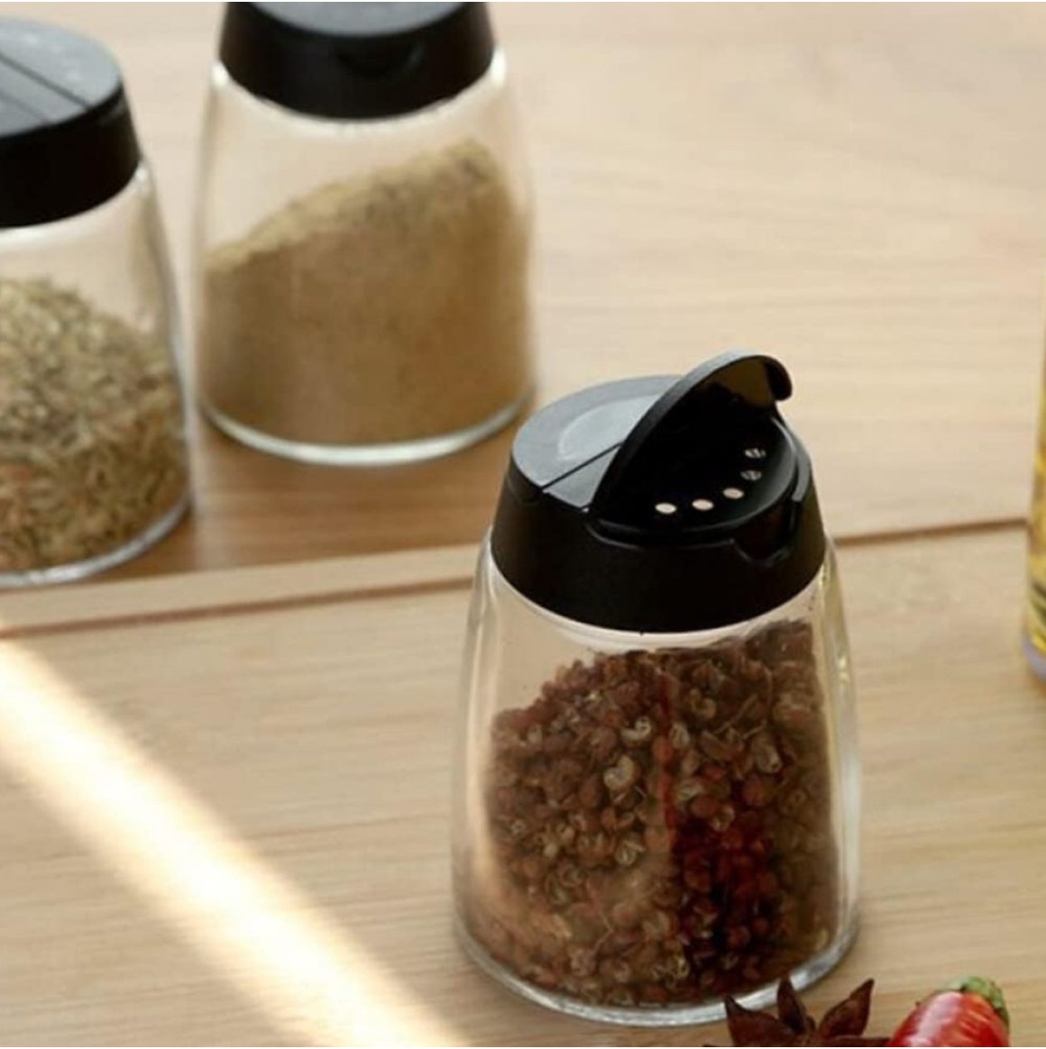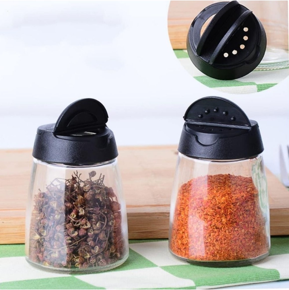 Porta Tempero de Vidro Tampa com 2 saidas