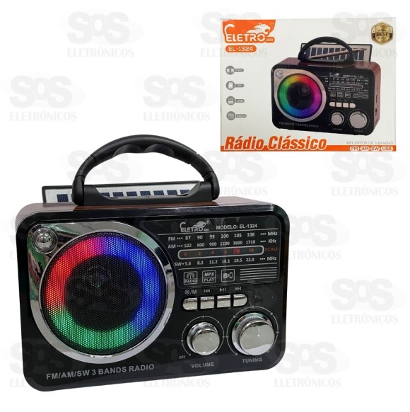 Rádio Retrô Bluetooth/FM/AM 3 Bandas Eletromex EL-1324 Rádio receptor de 3 bandas, possibilitando a sintonização FM, AM e SW. Conta também com conexão bluetooth, além de entradas para USB e cartão TF. Bateria recarregável via cabo Type-C. Acompanha alça para transporte. Tamanho: 20 x 13 cm Cores variadas