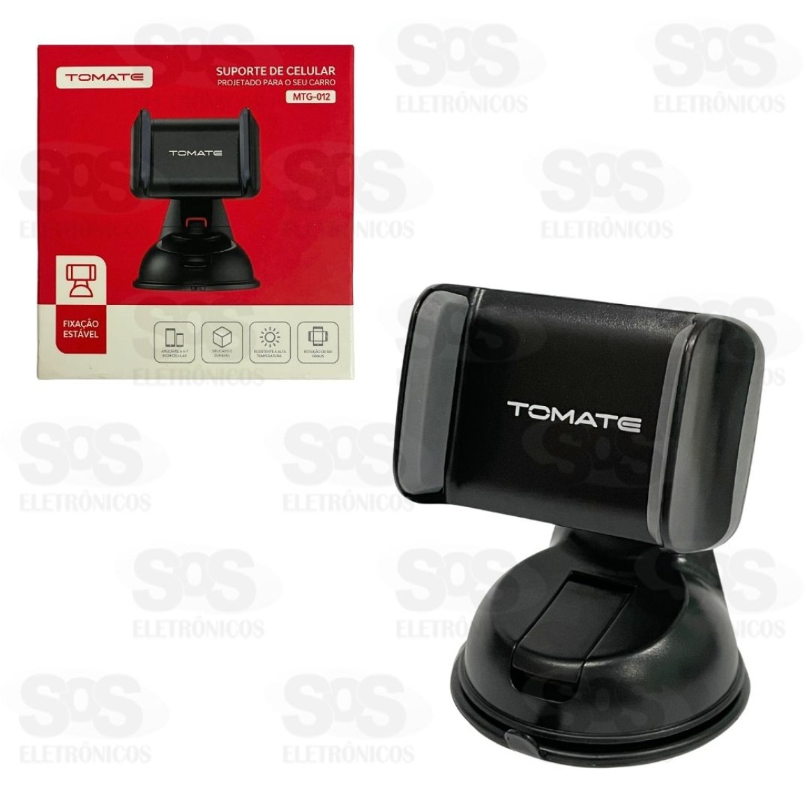 Suporte de Celular Para Carro Tomate MTG-012 Suporte com fixação por ventosa para colocar no painel do carro. Compatível com celulares de 4 à 7 polegadas. Rotação de 360 graus. Feito de material resistente.