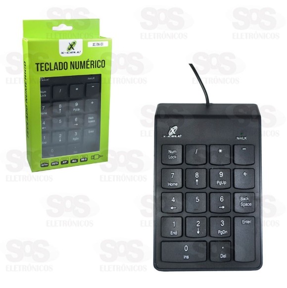Teclado Numérico Cabo USB X-Cell XC-TN-01 Ideal para notebook e computadores. Alta qualidade e durabilidade. Possui 18 teclas macias e silenciosas. Cabo de 1,4 metros com conexão USB. Compatível com Windows 98/ME/2000/XP/Vista/MAC OS Tamanho: 14 x 8,5 cm