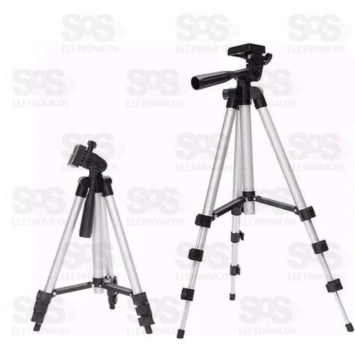 Inclui adaptador para smartphone (5,5-8,0cm), travas de elevação e inclinação, pernas retráteis com 4 ajustes de altura
