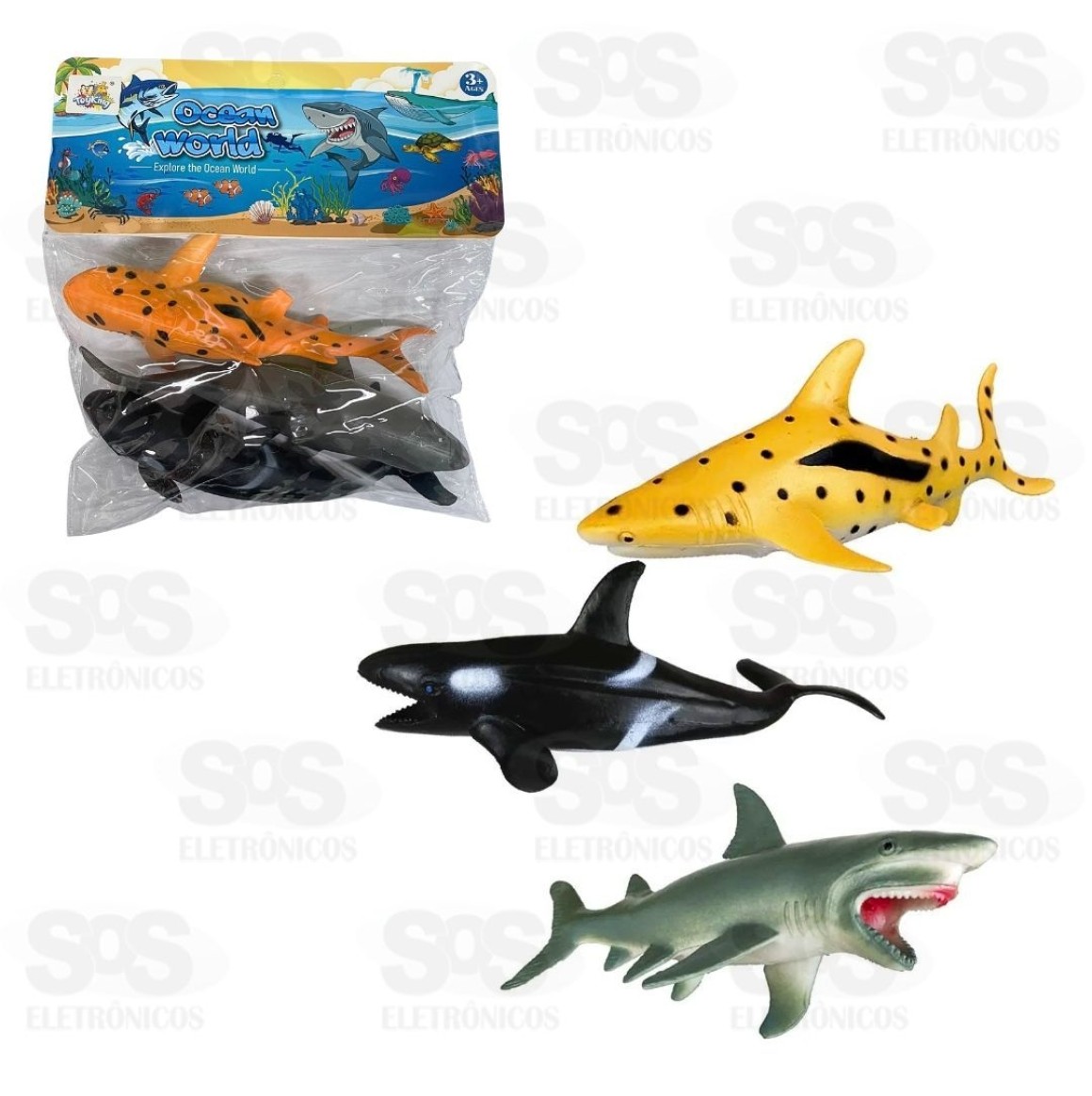 Tubarões De Plástico Com 3 Peças Toy King TK-AB0039