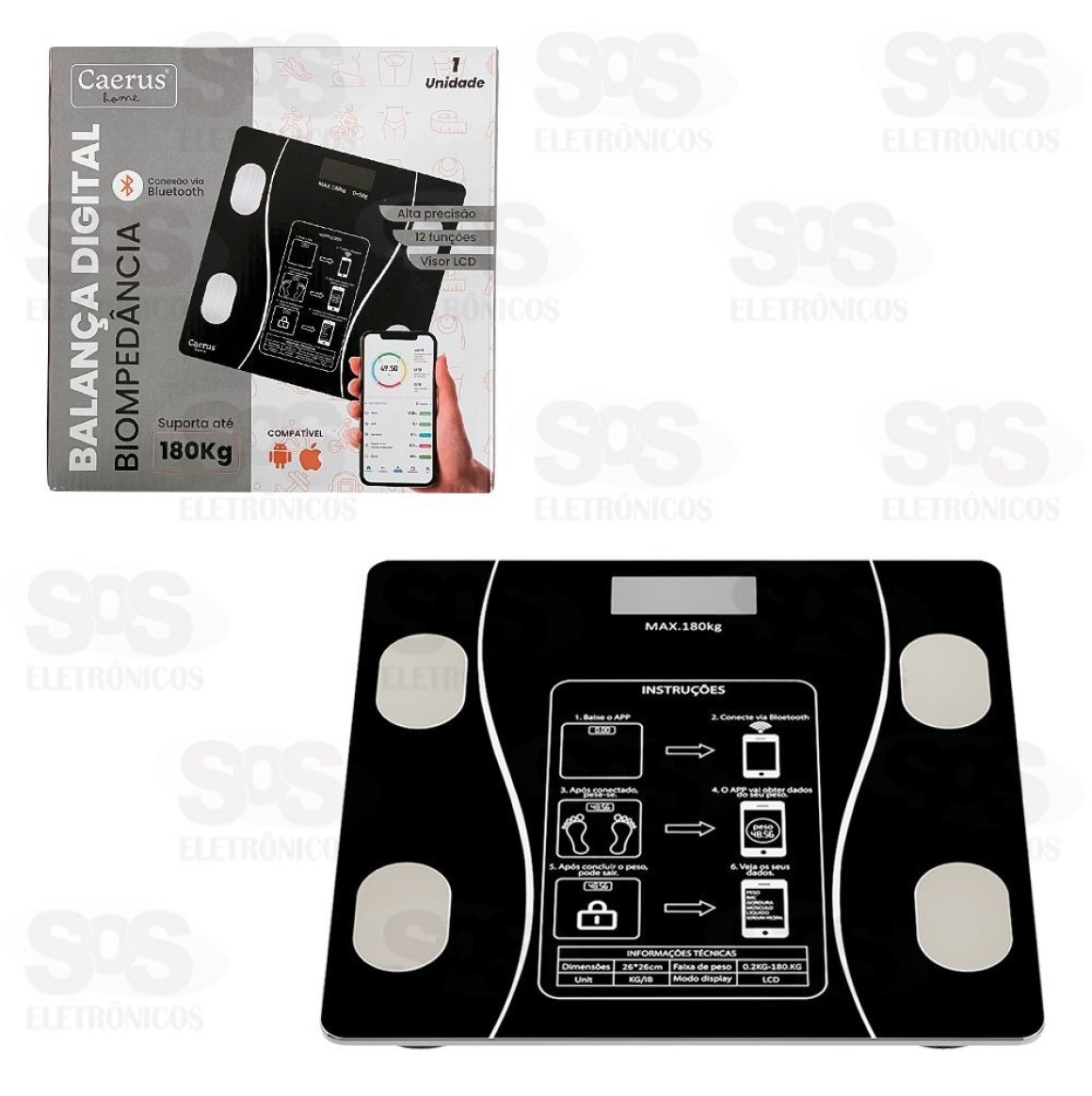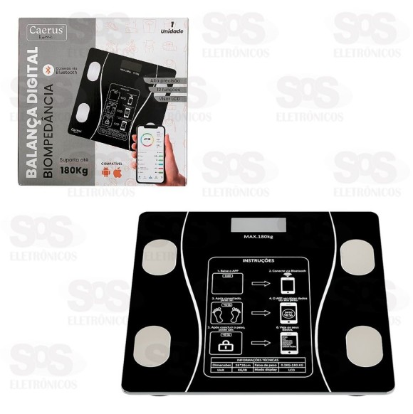Balança Digital Biompedância 180Kg Bluetooth Caerus CRS-2517