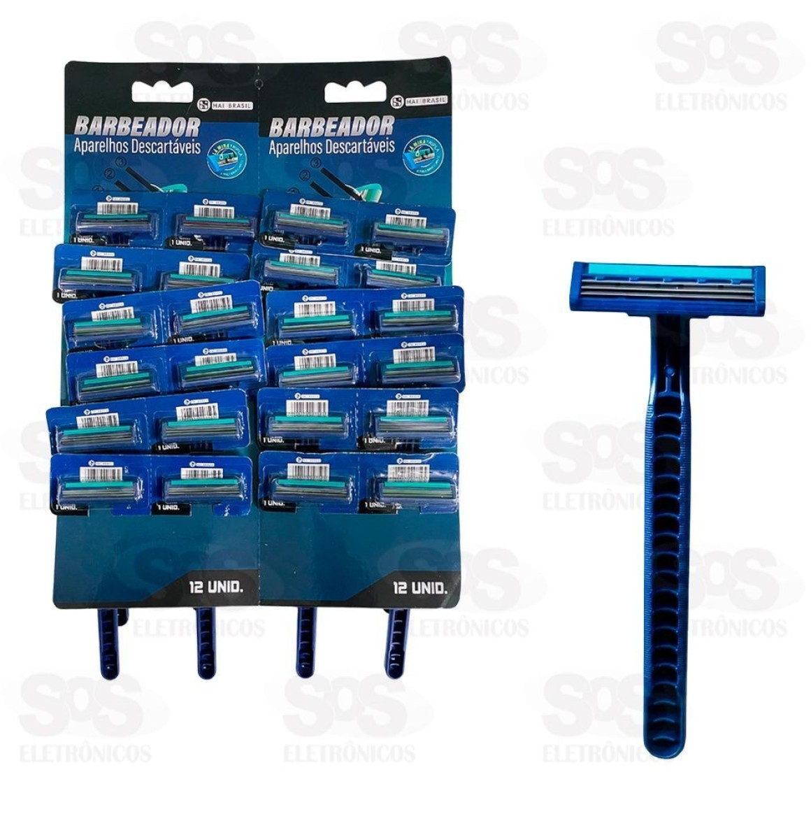 Aparelho De Barbear Descartável Com 3 Lâminas Cartela Com 24 Unidades AIH01-24 Barbeador descartável com 3 lâminas e com fita lubrificante para deslizar mais fácil. Com cabo emborrachado na cor azul. Pacote com 24 unidade. Produto descartável.