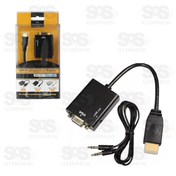 Cabo Conversor Hdmi Para Vga Com Audio