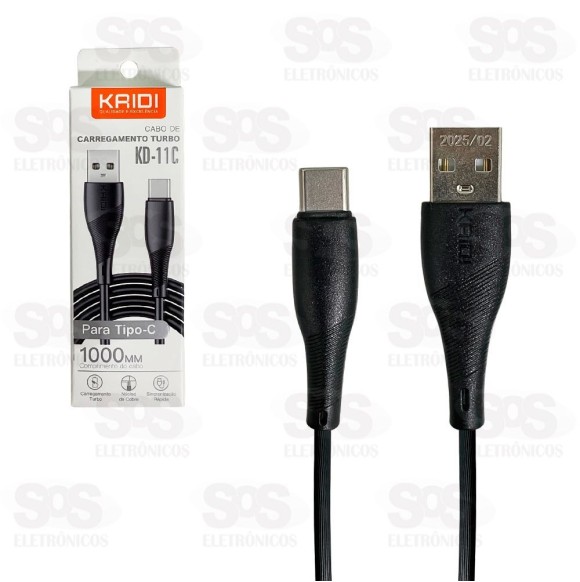 Cabo De Dados USB Para Type C 2.4A 1 Metro Kaidi KD-11C