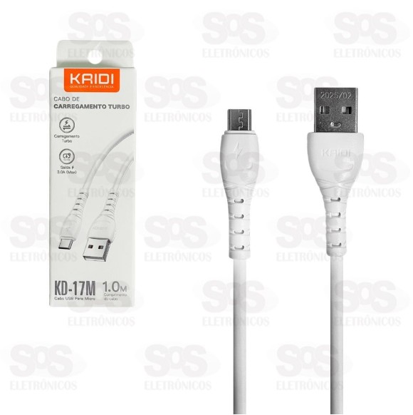 Cabo De Dados USB Para Micro USB V8 1 Metro Kaidi KD-17M