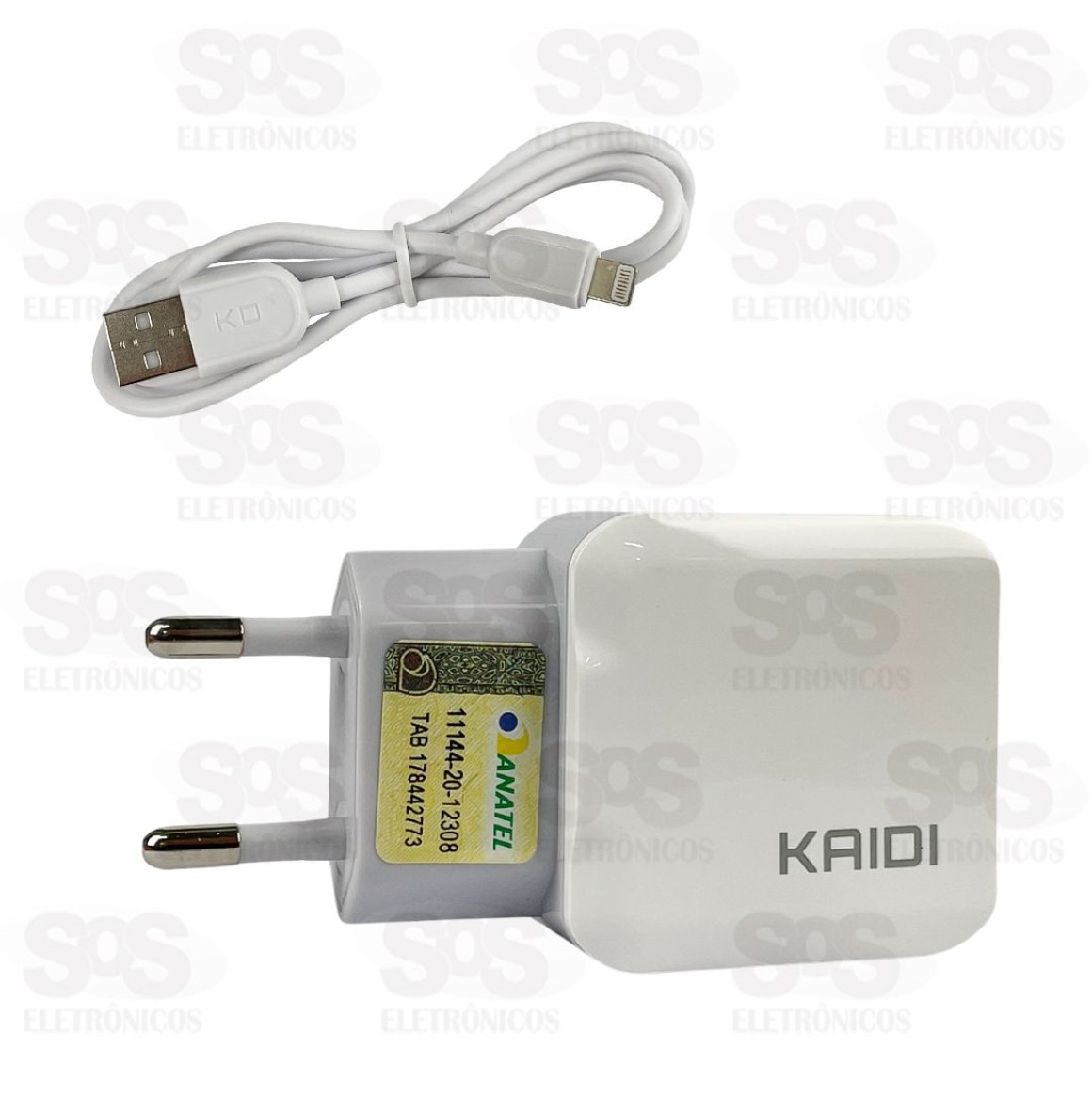 Carregador 2 USB 2.4A Com Cabo Lightning Kaidi KD-301A