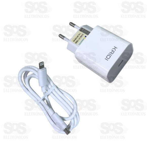 Carregador PD 20W Auto-ID Com Cabo Iphone Kaidi KD-108A