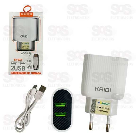 Carregador 2 USB 2.4A Com Cabo Micro USB V8 Kaidi KD-607S