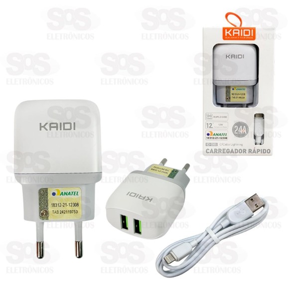 Carregador Rápido 2 USB 2.4A Cabo Lightning Kaidi KD-556A