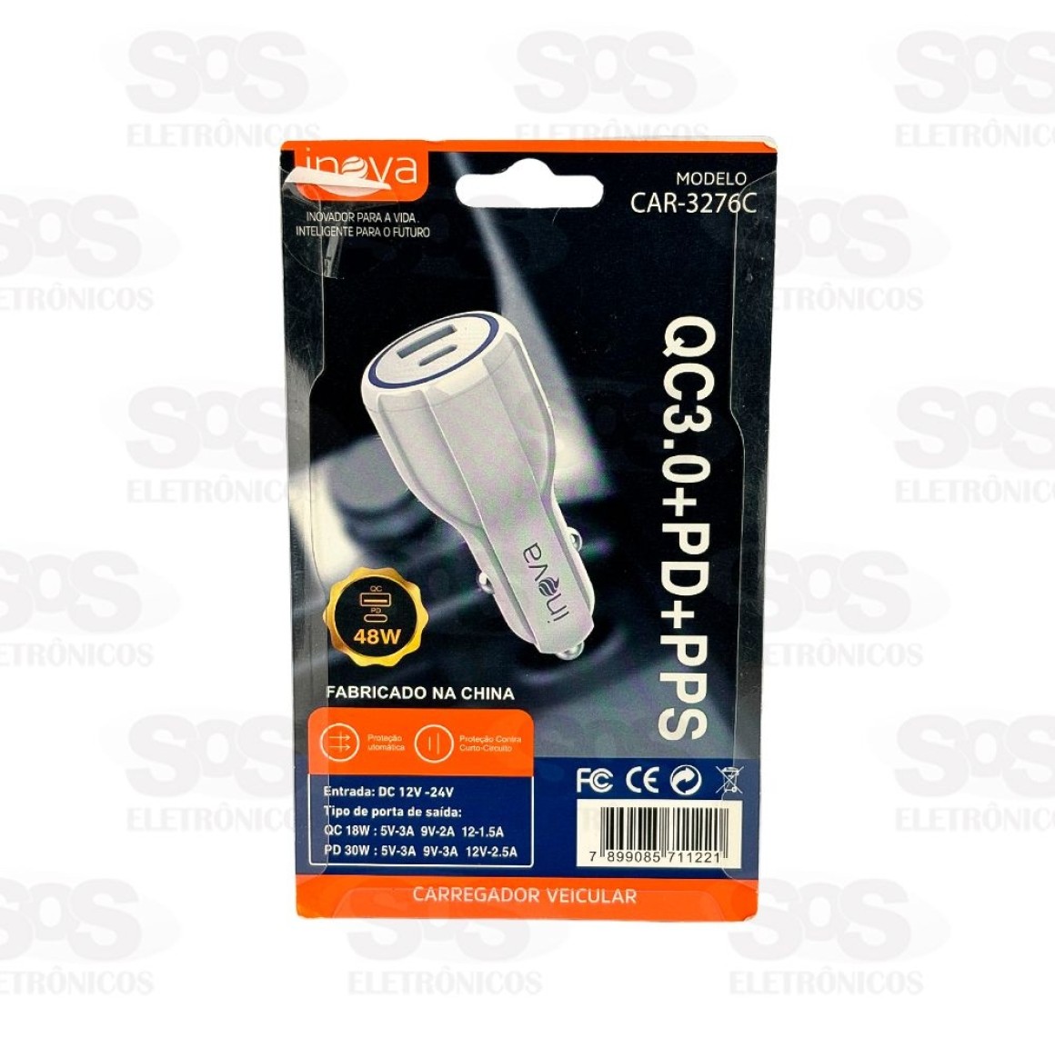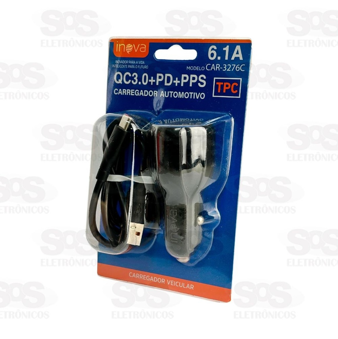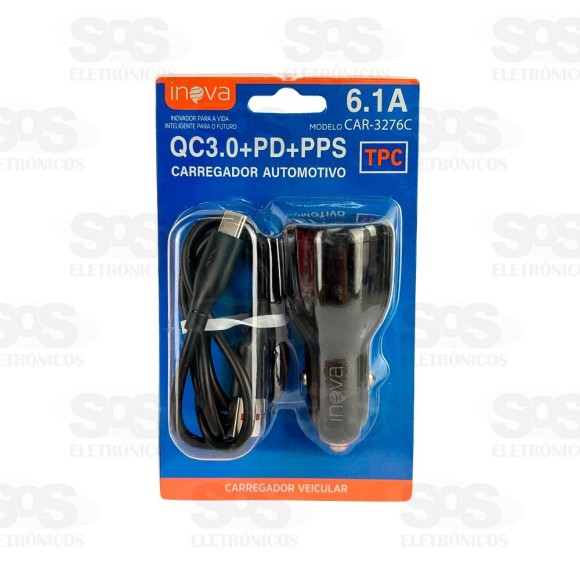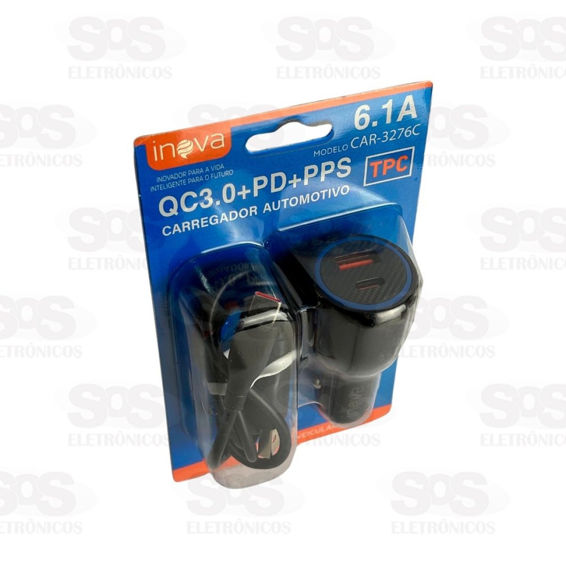 Carregador Veicular Com Cabo Type C 6.1A USB+Type C Inova CAR-3276C