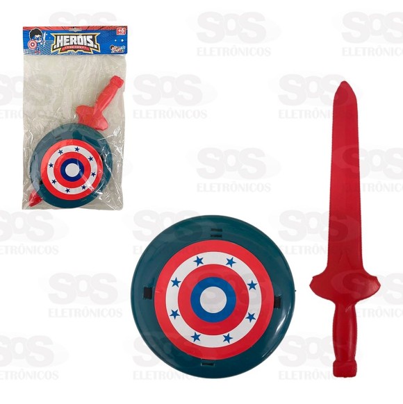 Kit Escudo e Espada Coleção Heróis Mini Toys 458 Acompanha 1 espada e 1 escudo de herói. Material: Plástico Medidas Aproximadas: Escudo: 23 cm Espada: 42 cm Com selo do Inmetro Indicado para maiores de 3 anos Cores Sortidas