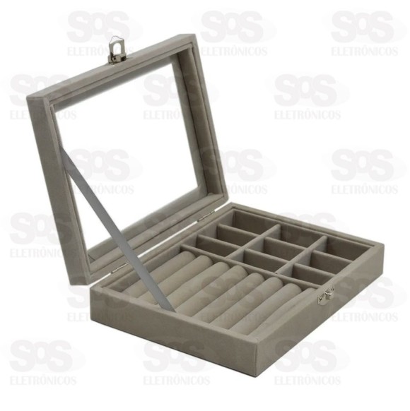 Desgin cmpacto mas com grande espaço interno. Acabamento aveludado que protege as joias de arranhões e embaraços. Tampa com fecho para travar. Tamanho: 20,5 x 15,5 cm Cores variadas