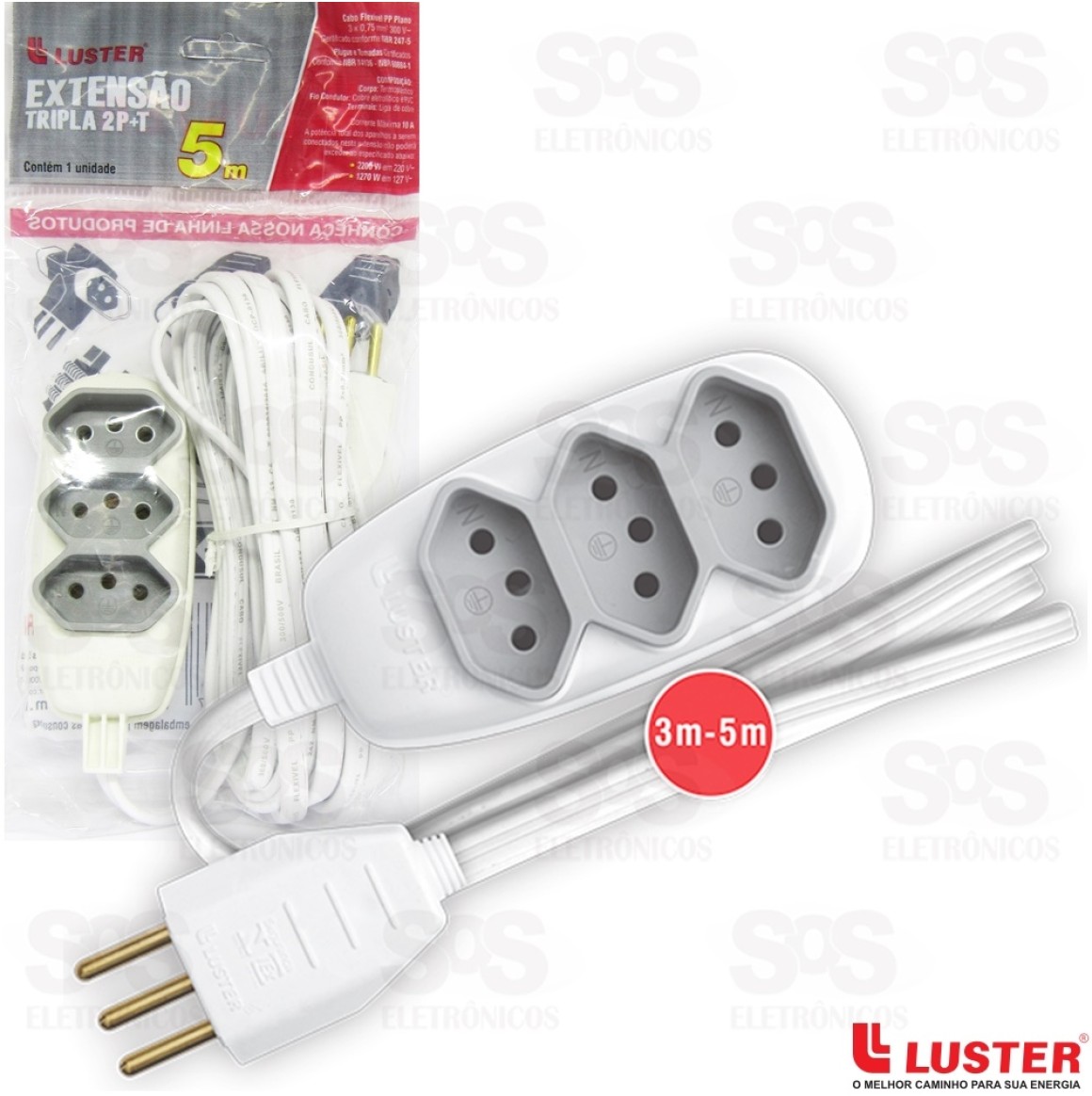 2. Extensão Elétrica Tripla 2P+T 5 Metros Luster 2173