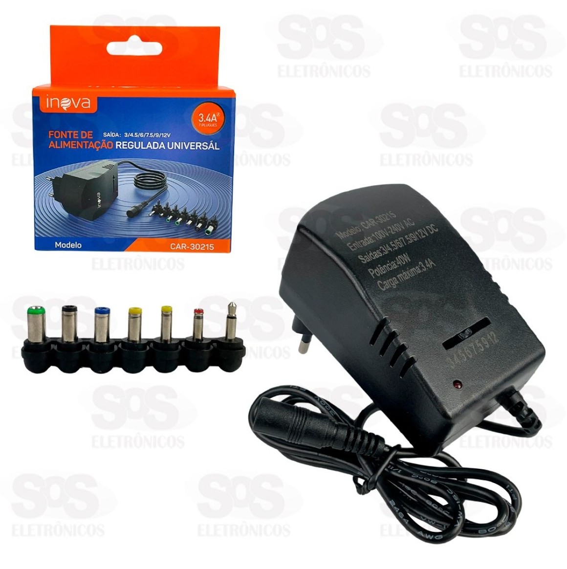 Fonte Regulada Até 12V Com 7 Plugs 40W Inova CAR-30215