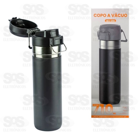 Garrafa Térmica à Vácuo 710ml WU-090 Feita de aço inoxidável 304, design a vácuo de dupla camada, segura e livre de BPA. Pode manter a água quente ou fria por horas. Tampa com trava e anel de vedação de silicone. Capacidade: 710 ml Cores variadas.