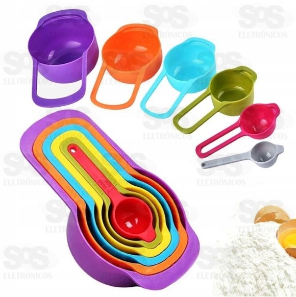 Com este jogo de medidores você terá todas as opções de medidas para que tudo saia perfeitamente, incluso 6 incríveis peças de colher e xícaras medidoras lindos com cores vivas.