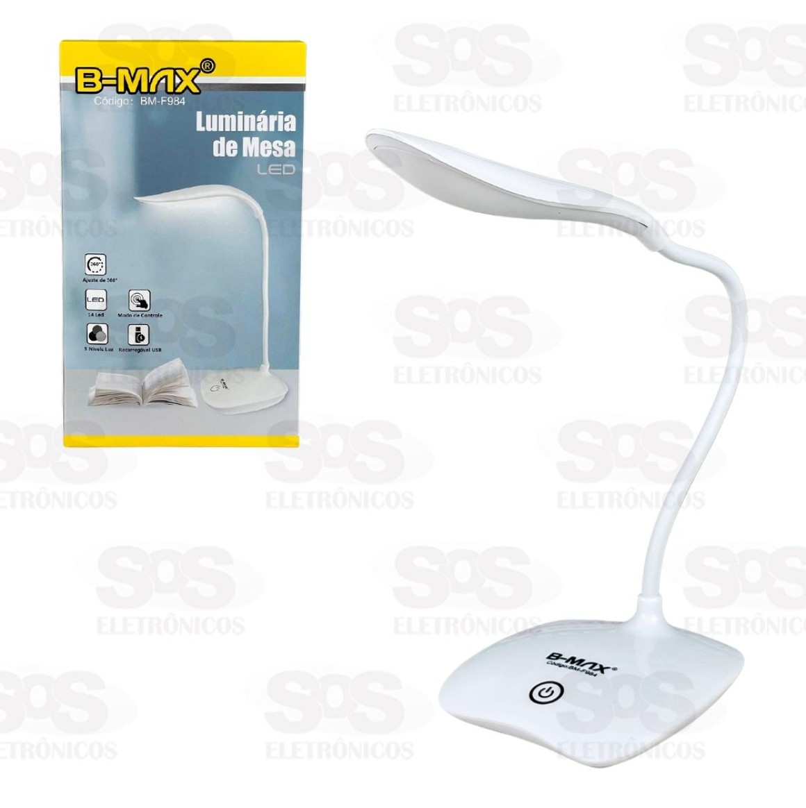 Luminária de Mesa Recarregável Touch Articulável 3 Níveis B-Max BM-F984