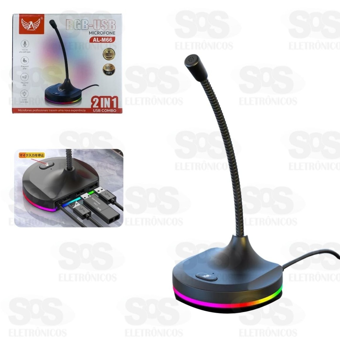 Microfone Gamer de Mesa Com Hub 3 USB AL-M66