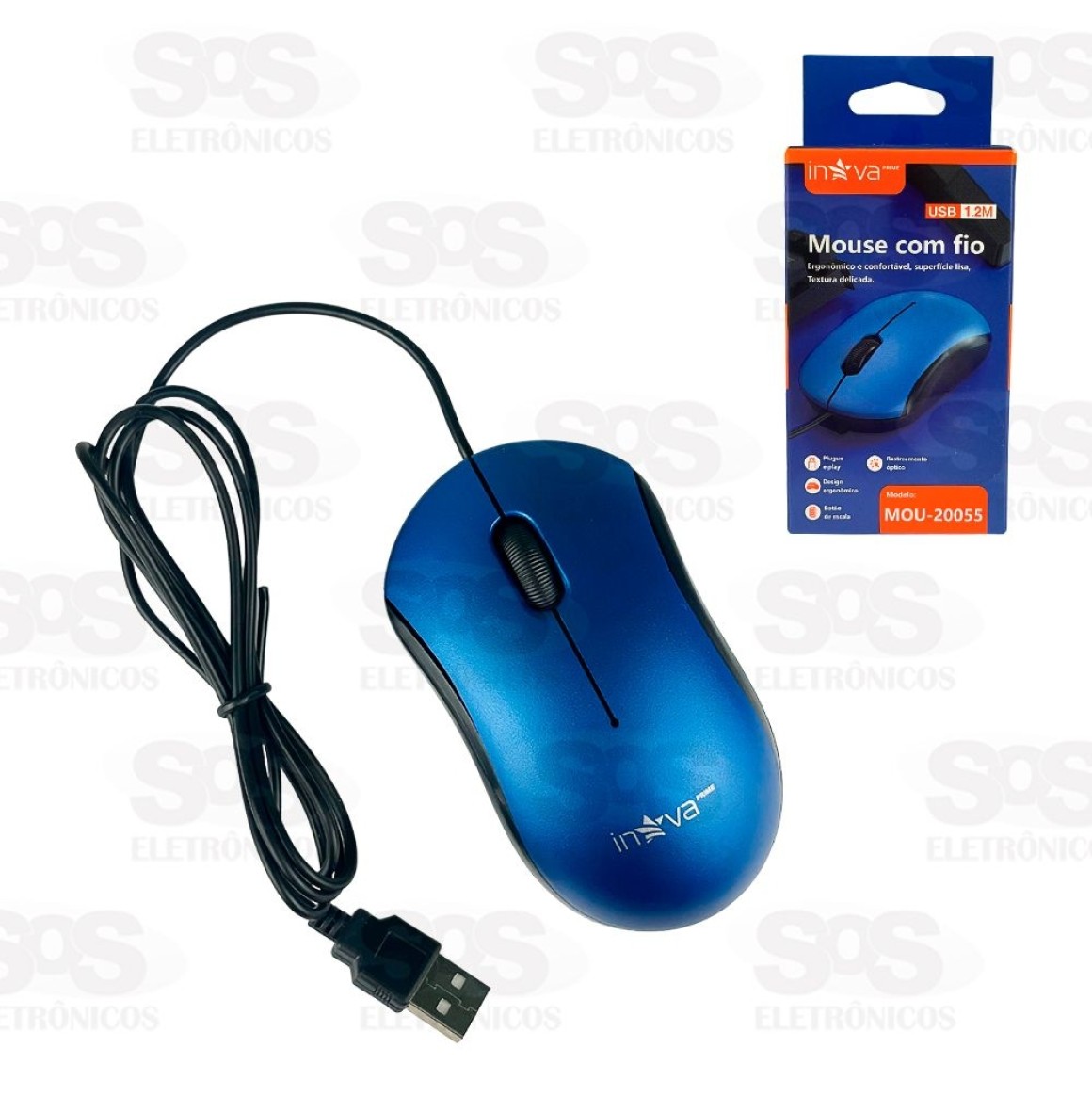Mouse Óptico Com Fio 1.2M Inova Prime MOU-20055Mouse ergonômico e confortável, com superfície lisa e textura delicada.